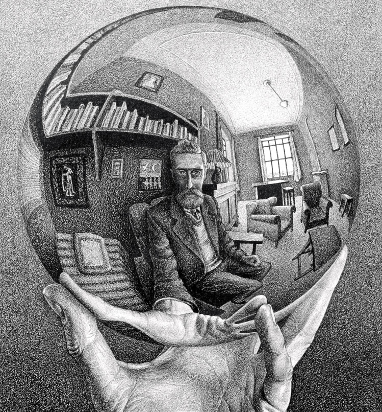 Stiamo parlando dell’olandese Maurits Cornelis Escher (1898-1972) e della sua arte grafica che racconta il mondo reale e il suo riflesso, nella quale ogni cosa combacia e nulla è disegnato per caso nemmeno in un punto, dove un complesso sistema di linee e di pieni e vuoti dà vita ai paradossi geometrici che lo hanno reso celebre al mondo e lo hanno fatto entrare nei moderni mondi della pubblicità, dei videoclip musicali, del cinema.