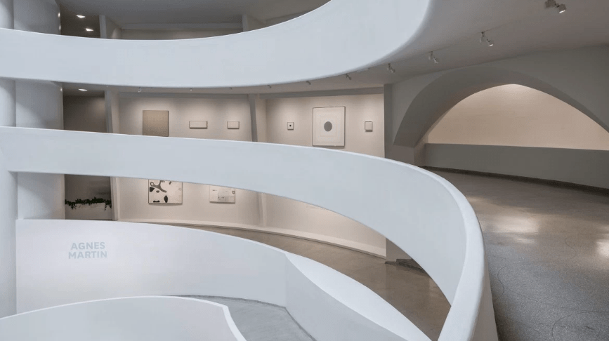 Una tela bianca. O meglio, 12 tele di lino che acrilico e grafite hanno reso di colore bianco, con delle leggere, solo accennate, righe orizzontali color grigio chiarissimo. Si apre così, con l’eleganza lieve di un infinito sconfinato, l’esposizione dedicata alla pittrice Agnes Martin. Le sue opere si susseguono nelle tortuose curve espositive del Guggenheim di New York in un percorso che invita il visitatore a osservare con curiosità un minimalismo quasi spiazzante. “Ma quando mi trovo davanti a una tela bianca, dove non c’è nulla, che cosa devo pensare?”